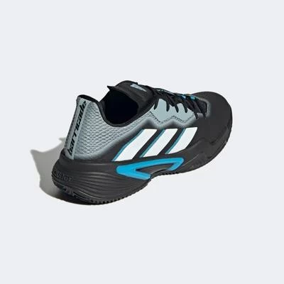 Designed to stand out on the Paris clay, these adidas Barricade tennis shoes have an intuitive lacing system that locks you in by pulling down the neoprene tongue to match your foot shape. In the heel, a Geofit system fills every gap so you feel at one with your footwear. Underneath, a cushioned Bounce midsole and TPU midfoot shank add comfort and stability. Colour: Magic Grey / Cloud White / Core Black Product Details Adaptive lacing system Mesh upper with Adituff toe Geofit Sense pods Engineered TPU shank Bounce midsole Adiwear outsole Upper contains a minimum of 50% recycled content