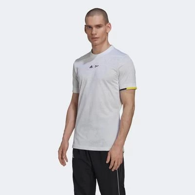 Serve for the oceans in a tennis tee that throws the spotlight on plastic waste. This crewneck T-Shirt is built to reduce distractions. Its FreeLift design gives you room to swing, and the drop tail hem keeps you covered through every stretch and lunge. Mesh inserts and moisture-absorbing AEROREADY work together to keep you confident when your game shifts up a gear. Colour: White Product Details Slim fit Crewneck Moisture-absorbing AEROREADY FreeLift design Mesh inserts on lower sleeves Drop tail hem Raschel Yarn contains 50% Parley Ocean Plastic