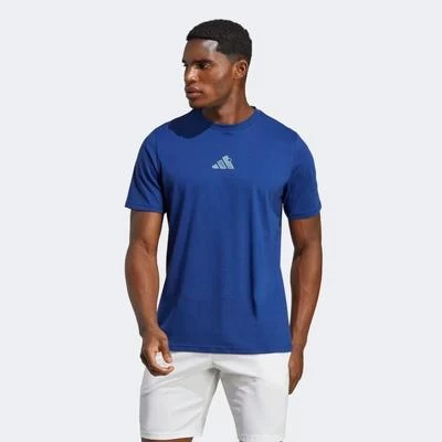 Part of an adidas collection created for the Southern Hemisphere’s biggest tennis competition. This tee captures your love for the sport with a large net-inspired graphic on the back. Soft single jersey fabric and moisture-absorbent AEROREADY pair up to keep you comfortable on and off the court. Colour: Victory Blue Product Details Regular fit Ribbed crewneck AEROREADY Made with Better Cotton Fabric: 70% cotton, 30% recycled polyester single jersey