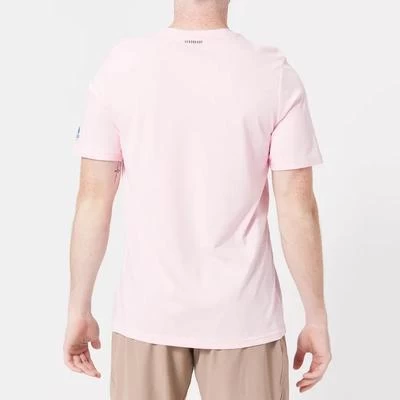 This Adidas Mens Tennis Tee is a soft build and moisture-wicking AEROREADY ensures it is the perfect choice for taking on to the court or into the gym. The colourful graphics make it an eye-catching option for wearing on a daily basis! Colour: Pink Product Details Regular Fit Ribbed Crewneck Moisture-absorbing AEROREADY Screen printed Graphics Single Jersey 70% cotton, 30% recycled polyester single jersey