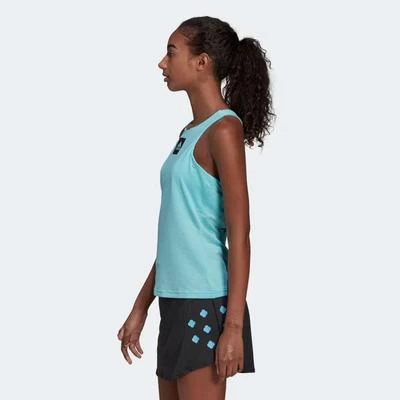 Looking to switch up your look on the court? Why not rock this Paris Y Tank Top inspired by the famous botanical gardens surrounding Paris’ premier tennis destination. Perfect for clay court season, it features a stretchy fabric and a shoulder-freeing Y shaped strap for no-distraction play. Colour: Pulse Aqua / Black Made In Part With Recycled Materials Made with a series of recycled materials, and at least 60% recycled content, this product represents just one of adidas’ solutions to help end plastic waste. Beat The Heat Designed to keep you going in hot conditions – beat the heat with adidas HEAT.RDY. Y-Shaped Strap On the back, the elastic strap is positioned to give your arms full freedom of movement. Stretchy Fabric Added elasticity lets you move freely. Product Details Slim fit Lifted round neck with elastic Y-back Soft feel Shaped shoulder and arm area Integrated bra Interlock Fabric: 79% recycled polyester / 21% elastane interlock