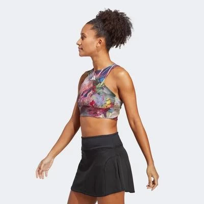 Created for the Southern Hemisphere’s most prestigious tennis tournament, this adidas crop top highlights a brand-new approach to carbon recycling. Built using yarn that includes captured industrial emissions, it also has moisture-wicking AEROREADY so you stay dry and confident while you overcome your opponent. The racerback design gives your shoulders a full range of motion for booming shots. Colour: Multicolour / Black Made To Rethink Our Materials For this product adidas turned to a greenhouse gas technology. It uses captured industrial emissions as a new material feedstock. CO2 is fermented into ethanol which constitutes 30% by weight of a polyester yarn. adidas knitted this yarn into various products and now this carbon-based ethanol makes up a minimum of 15% by weight of this garment. With the help of innovation, we are seeing possibilities in turning towards new resources. Feel Dry, Stay Dry adidas AEROREADY manages your body’s moisture to keep you dry and in the zone. Freedom To Move The soft fabric includes elastane for stretch. Racerback Racerback design offers unrestricted movement. Product Details Slim fit Round neck Power-mesh inner lining AEROREADY Racerback with keyhole cut-out Integrated bra with removable padding Crop length Fabric: 85% recycled polyester, 15% elastane interlock