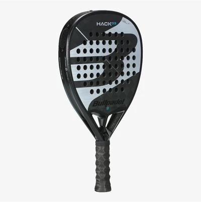 The Hack 03 is a diamond shaped racket, of maximum power, high performance and without control losses. It is conceived for professional or advanced players. Colour: Black / Silver It features the new Air React Channel system, which consists of an aerodynamic frame creating a steady, agile, and light structure at the same time. Its outer core is made of the new Tricarbon combined carbon, its inner core made of the new MultiEva rubber and its CarbonTube frame of 100% carbon fibre. It includes the new Metalshield frame which adapts to the new CustomWeight plates system which allow to modify the racket’s balance depending on the requirements of each player. It features a Vibradrive system for the absorption of vibrations, Hack throat and Nerve channels on the side of the racket’s frame. In addition, it includes the new Hesacore grip, which reduces the vibrations, effort, and the injuries’ probabilities. The Hack racket features the new Adaptia system, developed for the Pro line rackets.