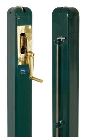 High quality, durable and stable tennis post. This make is made of steel and is sqaure for ease of installation. Posts are 76mm powdercoated green with net lacing bars This set comes with brass winder post, anchor post, and pair of sockets & caps Used for hard courts