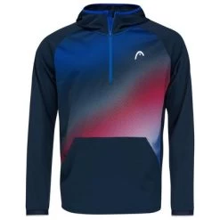Bring some color and energy to the tennis courts with the boys’ HEAD Topspin Hoodie, with a choice of modern and vibrant designs. Comfort is guaranteed in a hoodie with a fixed hood, kangaroo pockets and elastic tape at the hem back panel and sleeve hem. HEAD’s Moisture Transfer Microfiber technology offers a cooling effect and allows the fabric to dry quickly. Colour: Dark Blue Product Details YKK half front zipper with chin protection Fixed hood HEAD branded necktape Kangaroo pockets Elastic tape at hem back panel and sleeve hem Regular fit Fabric: 100% polyester double knit twillback