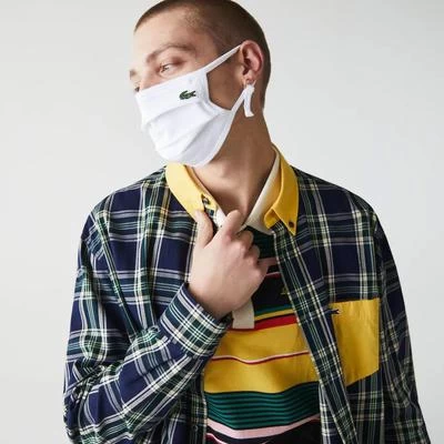 Protect yourself in style. Essential for everyone, this supple washable and adjustable mask* has been produced to give you extra protection. Thanks to its triple thickness of spray-suppressing piqué cotton and its seamless double-pleat structure, it is worn from the nose to the chin. Its plate metal grip adjusts on the bridge of your nose and its pulls fit gently to your face. These loops featuring a plastic buckle allow you to adjust the mask to your face. *This mask is not a medical mask as per the EU/2017/745 regulation, nor personal protective equipment as per the EU/2016/425 regulation. These mask are compliant to category 1 according AFNOR SPEC S76-001. Category 1 provides 90% filter of air particles. Colour: White Product Details 100% cotton Green stitched crocodile As a hygiene measure, masks cannot be returned or exchanged
