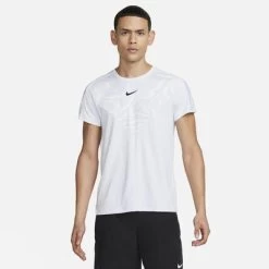Swing away with the sweat-wicking power of the NikeCourt Slam T-Shirt. Movement is critical on the court, so Nike have made this T-Shirt from stretchy fabric and strategically placed seams. Plus, there’s a graphic inspired by Australia’s terrain, in honour of one of tennis’s biggest tournaments. Colour: Football Grey / Black Product Details Nike Dri-FIT technology moves sweat away from your skin for quicker evaporation, helping you stay dry and comfortable Lightweight knit fabric is breathable and stretchy, so you can move without the fabric clinging to your skin Seams are moved forward at the shoulder and wrapped through the upper back so you can get the most out of your swing Bonded darts at the back panel have a smooth feel for distraction-free comfort Self neckband Shaped side vents Droptail hem Fabric: 100% polyester