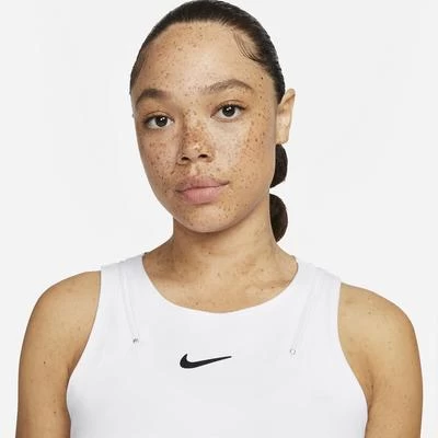 Classic tailoring gets a twist in the NikeCourt Dri-FIT Slam Tank. This breathable, stretchy design has bonded, vertical seams on the front that mimic the look of a corset. A zip on each shoulder can be worn open or closed to increase airflow or add coverage. Colour: White Extra Breathability Stretchy mesh on the sides and lower back increases breathability in these high-heat and high-motion areas. Stay-Dry Comfort Nike Dri-FIT Technology moves sweat away from your skin for quicker evaporation, helping you stay dry and comfortable. Product Details Zip on each shoulder Sweat-wicking material