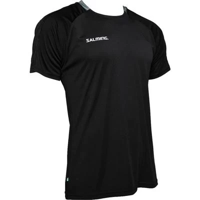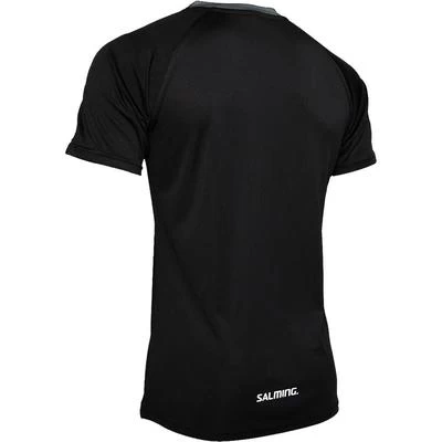 Light t-shirt in airy and soft quality that makes the games more comfortable. The material transports moisture in a very efficient way. Equipped with raglan sleeves for optimal mobility, elastic stripes on the sleeves with embossed Salming logo. Salming logo on the right chest and at the lower back. Colour: Black / Asphalt Product Details Regular fit Raglan sleeves Embossed Salming logo Fabric: 100% polyester