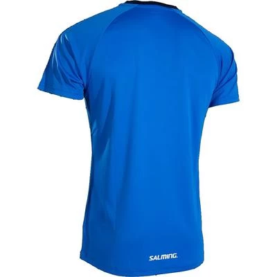 Light t-shirt in airy and soft quality that makes the games more comfortable. The material transports moisture in a very efficient way. Equipped with raglan sleeves for optimal mobility, elastic stripes on the sleeves with embossed Salming logo. Salming logo on the right chest and at the lower back. Colour: Blue Product Details Regular fit Raglan sleeves Embossed Salming logo Fabric: 100% polyester