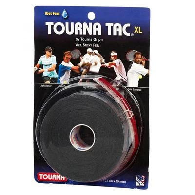 The Tournagrip Tourna Tac XL Overgrips is new from Tournagrip, it is super absorbent for a comfortable dry feel. The grip is designed to be extra long perfect for longer handled rackets. A non slip surface means you have a firmer hold on the handle, a tacky feel offers excellent grip, designed for a fast response performance. New from Tournagrip Extra length for rackets with longer handles Recommended if you have double-handed groundstrokes Non-slip, tacky grip, ideal for cool, non-humid conditions Super absorbent Economy pack of 10