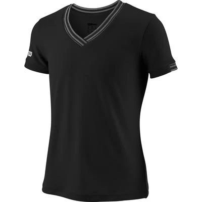 Versatile and timeless V-neck for training and off-court wear Colour: Black / White Wilson Girls Team V-neck is the perfect addition to your sports and leisure collection. Thanks to the classic timeless design, this affordable tee can be used for matches, training and general everyday wear. V-neck Lightweight Fabric Material: 100% Polyester